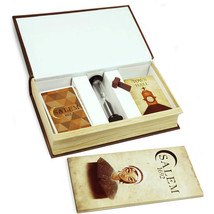 SHES A WITCH: This high quality game comes in a magnetically-closing faux book box with a simple design. Play as one of 15 villagers from the old Salem town with character illustrations and bios.