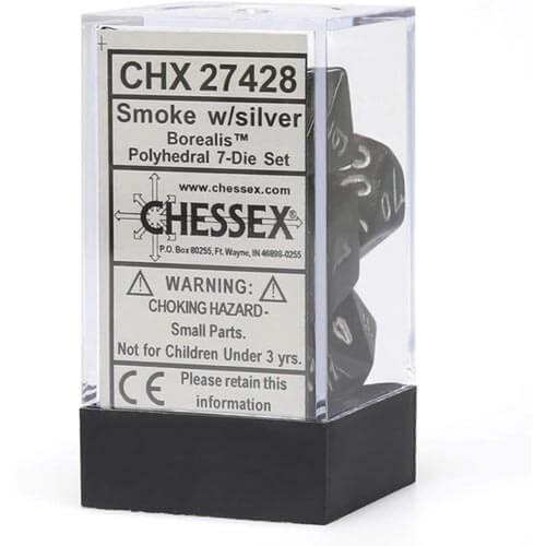 D7 Die Set Dice Borealis Poly (7 Dice) - Smoke/Silver