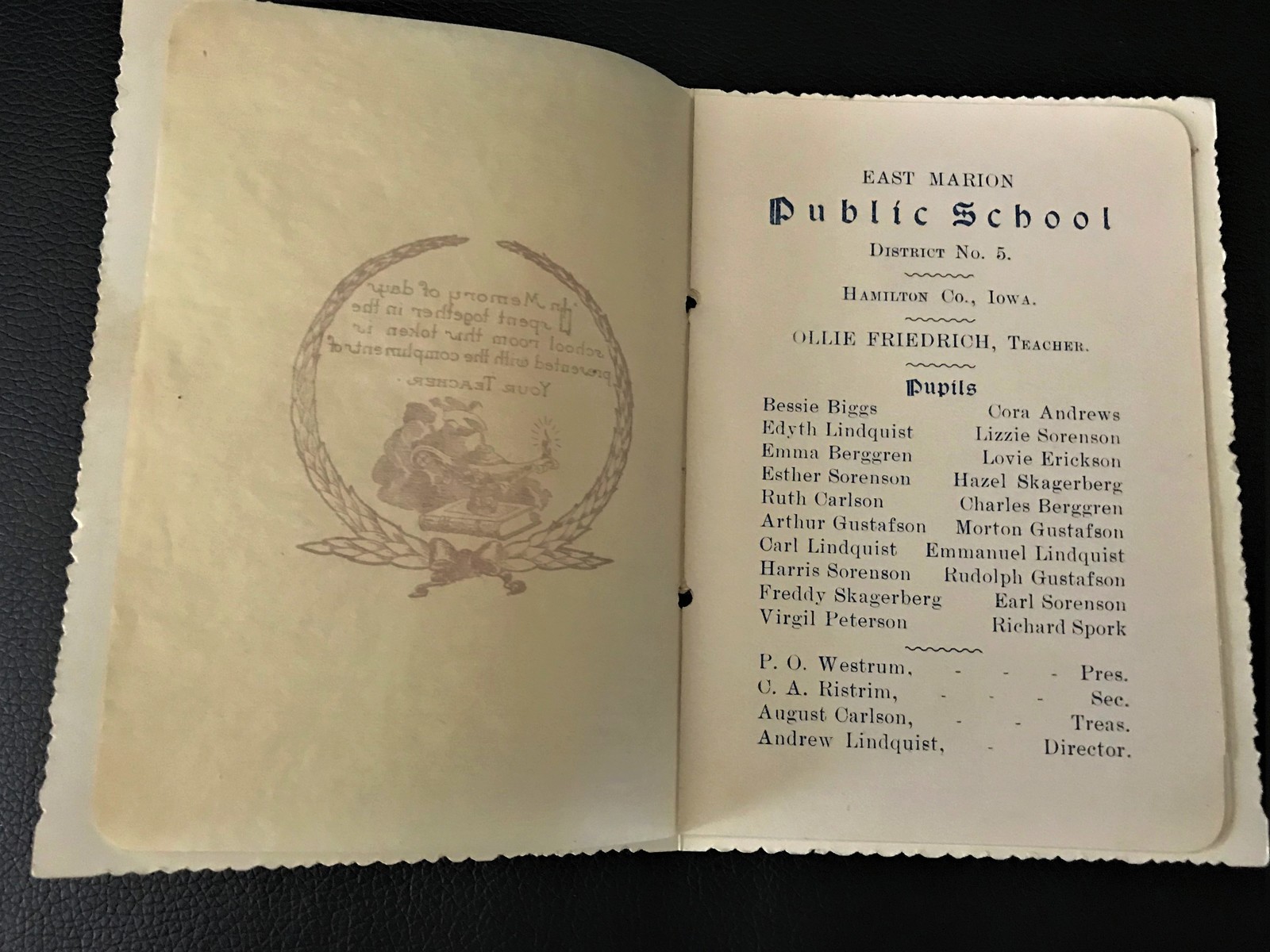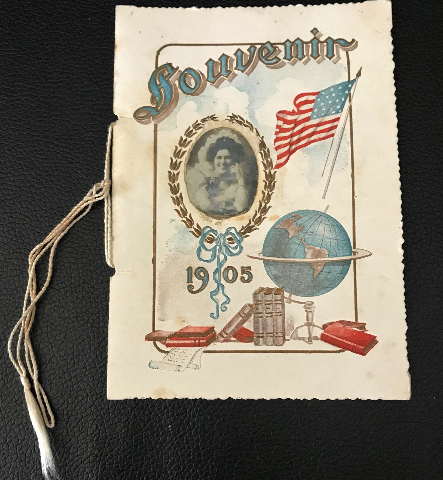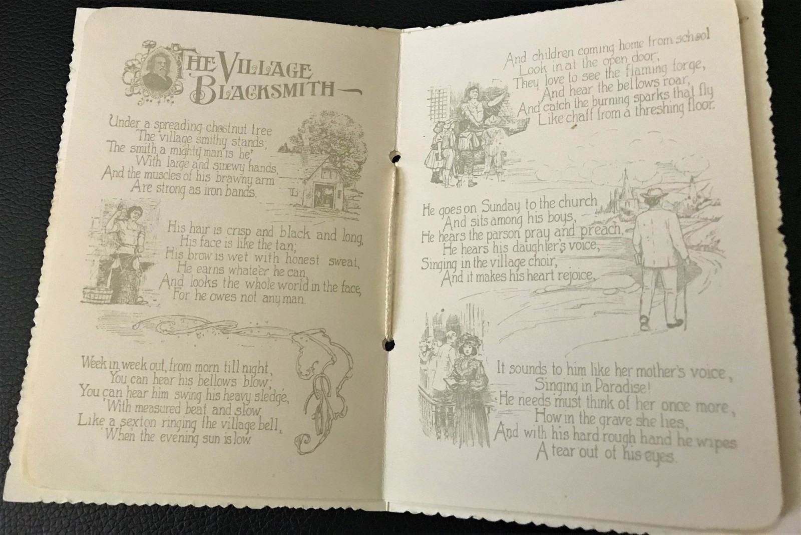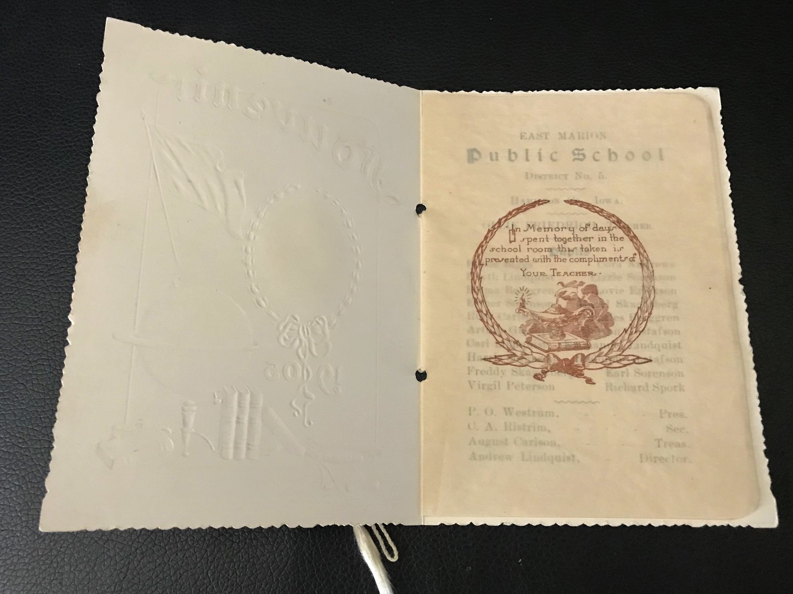 Here we present an absolutely lovely 1905 public school souvenir. These were given to students after their graduation from that year's schooling. The first inside page, printed on a thin tissue like paper, has the following information printed: "In memory of days spent together in the school room this token is presented with the compliments of your teacher." The pages that follow includes a pupil Leger poetry all accompanied by lovely imagery. It's a truly beautiful time capsule from a gentle and simpler time.