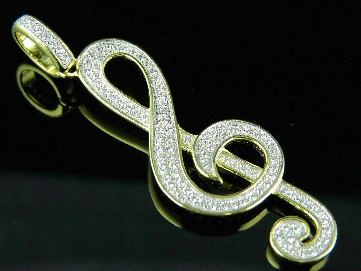 2Ct Round Cut CZ VVS1 Diamond Musical Note Pendant 14k Yellow Gold Finish