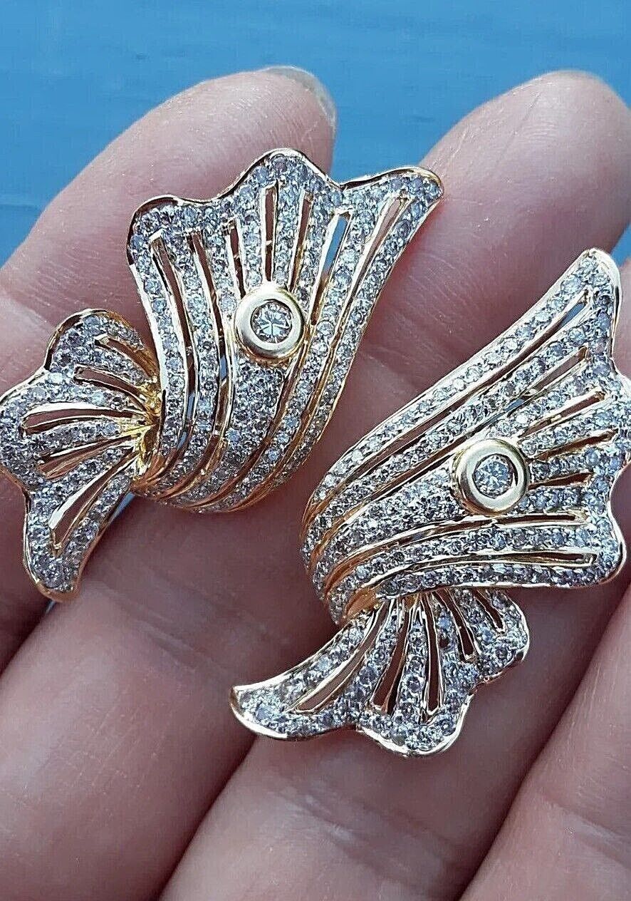 2Ct Round Cut Diamond Cluster Art Deco Hoop Earrings14K Yellow Gold Finish