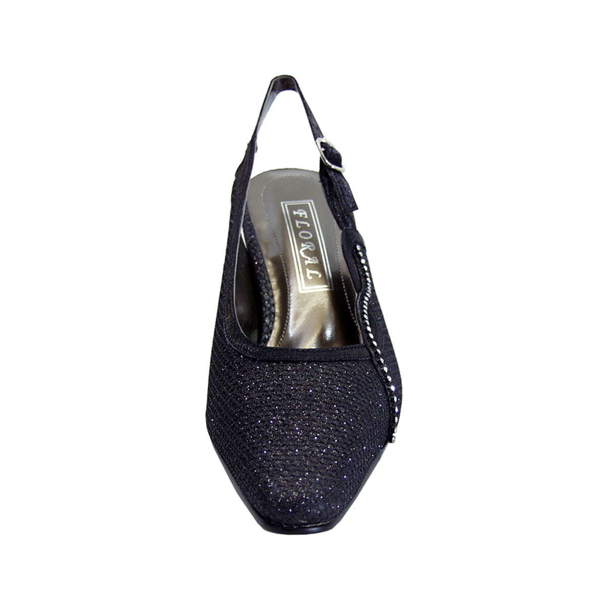 FLORAL Ximena women's extra wide width dress slingback pumps are sophisticated and comfortable. These ladies 2" mid-heel shoes feature a shiny metallic synthetic fabric upper along with crystal trimming and a cushioned insole. Its outsole is made of durable and lightweight rubber materials for maximum surface grip to give you support at any special party occasion.