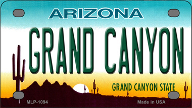 Grand Canyon Arizona Novelty Mini Metal License Plate Tag. 2.2" x 4" high gloss novelty mini metal license plate tag. Made of the highest quality aluminum for a weather resistant finish. It is lightweight and durable. Pre-drilled holes for quick and easy mounting on any vehicle, or add a ribbon, wire or string to instantly turn this license plate into a sign and display it on a wall or door. Individually shrink-wrapped and proudly made in the USA.