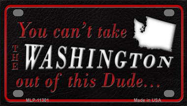 Washington Dude Novelty Mini Metal License Plate Tag. 2.2" x 4" high gloss novelty mini metal license plate tag. Made of the highest quality aluminum for a weather resistant finish. It is lightweight and durable. Pre-drilled holes for quick and easy mounting on any vehicle, or add a ribbon, wire or string to instantly turn this license plate into a sign and display it on a wall or door. Individually shrink-wrapped and proudly made in the USA.
