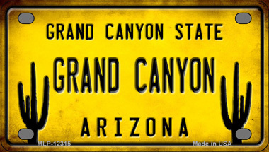 Arizona Grand Canyon Novelty Mini Metal License Plate Tag. 2.2" x 4" high gloss novelty mini metal license plate tag. Made of the highest quality aluminum for a weather resistant finish. It is lightweight and durable. Pre-drilled holes for quick and easy mounting on any vehicle, or add a ribbon, wire or string to instantly turn this license plate into a sign and display it on a wall or door. Individually shrink-wrapped and proudly made in the USA.