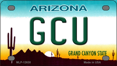 Grand Canyon Univ Arizona Novelty Mini Metal License Plate Tag. 2.2" x 4" high gloss novelty mini metal license plate tag. Made of the highest quality aluminum for a weather resistant finish. It is lightweight and durable. Pre-drilled holes for quick and easy mounting on any vehicle, or add a ribbon, wire or string to instantly turn this license plate into a sign and display it on a wall or door. Individually shrink-wrapped and proudly made in the USA.