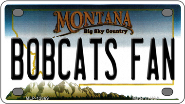 Bobcats Fan Monana Novelty Mini Metal License Plate Tag. 2.2" x 4" high gloss novelty mini metal license plate tag. Made of the highest quality aluminum for a weather resistant finish. It is lightweight and durable. Pre-drilled holes for quick and easy mounting on any vehicle, or add a ribbon, wire or string to instantly turn this license plate into a sign and display it on a wall or door. Individually shrink-wrapped and proudly made in the USA.