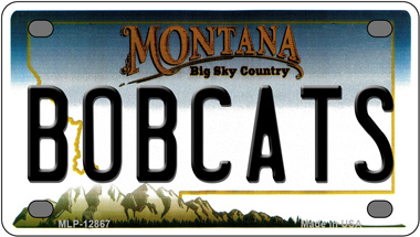 Bobcats Monana Novelty Mini Metal License Plate Tag. 2.2" x 4" high gloss novelty mini metal license plate tag. Made of the highest quality aluminum for a weather resistant finish. It is lightweight and durable. Pre-drilled holes for quick and easy mounting on any vehicle, or add a ribbon, wire or string to instantly turn this license plate into a sign and display it on a wall or door. Individually shrink-wrapped and proudly made in the USA.