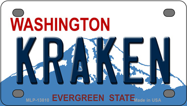 Kraken Washington Novelty Mini Metal License Plate Tag. 2.2" x 4" high gloss novelty mini metal license plate tag. Made of the highest quality aluminum for a weather resistant finish. It is lightweight and durable. Pre-drilled holes for quick and easy mounting on any vehicle, or add a ribbon, wire or string to instantly turn this license plate into a sign and display it on a wall or door. Individually shrink-wrapped and proudly made in the USA.