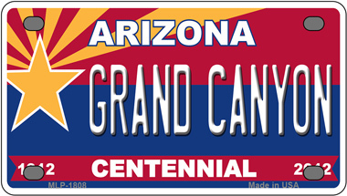 Arizona Centennial Grand Canyon Novelty Mini Metal License Plate Tag. 2.2" x 4" high gloss novelty mini metal license plate tag. Made of the highest quality aluminum for a weather resistant finish. It is lightweight and durable. Pre-drilled holes for quick and easy mounting on any vehicle, or add a ribbon, wire or string to instantly turn this license plate into a sign and display it on a wall or door. Individually shrink-wrapped and proudly made in the USA.