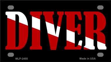 Scuba Diver Novelty Mini Metal License Plate Tag. 2.2" x 4" high gloss novelty mini metal license plate tag. Made of the highest quality aluminum for a weather resistant finish. It is lightweight and durable. Pre-drilled holes for quick and easy mounting on any vehicle, or add a ribbon, wire or string to instantly turn this license plate into a sign and display it on a wall or door. Individually shrink-wrapped and proudly made in the USA.