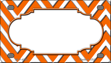 Orange White Chevron Center Scallop Novelty Mini Metal License Plate Tag. 2.2" x 4" high gloss novelty mini metal license plate tag. Made of the highest quality aluminum for a weather resistant finish. It is lightweight and durable. Pre-drilled holes for quick and easy mounting on any vehicle, or add a ribbon, wire or string to instantly turn this license plate into a sign and display it on a wall or door. Individually shrink-wrapped and proudly made in the USA.