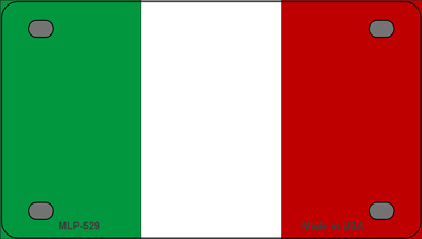 Italy Flag Novelty Mini Metal License Plate Tag. 2.2" x 4" high gloss novelty mini metal license plate tag. Made of the highest quality aluminum for a weather resistant finish. It is lightweight and durable. Pre-drilled holes for quick and easy mounting on any vehicle, or add a ribbon, wire or string to instantly turn this license plate into a sign and display it on a wall or door. Individually shrink-wrapped and proudly made in the USA.