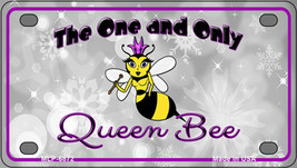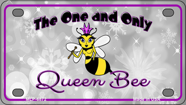 Queen Bee Purple Novelty Mini Metal License Plate Tag. 2.2" x 4" high gloss novelty mini metal license plate tag. Made of the highest quality aluminum for a weather resistant finish. It is lightweight and durable. Pre-drilled holes for quick and easy mounting on any vehicle, or add a ribbon, wire or string to instantly turn this license plate into a sign and display it on a wall or door. Individually shrink-wrapped and proudly made in the USA.