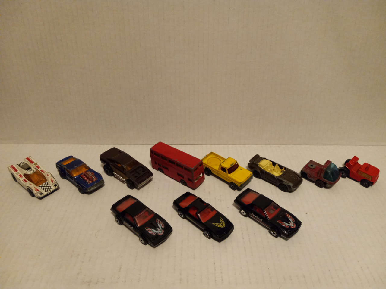 MATCHBOX - LOT OF 11 VINTAGE CARS - DOUBLE DECKER, BROWN SUGAR, PONTIAC FIREBIRD 1982 VINTAGE, T - TOP