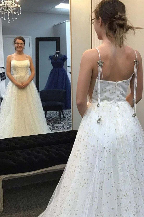 Beautiful Sky Blue Tulle Star A-line Long Prom Dress, Formal Dresses,maxi dresse added to cart.
