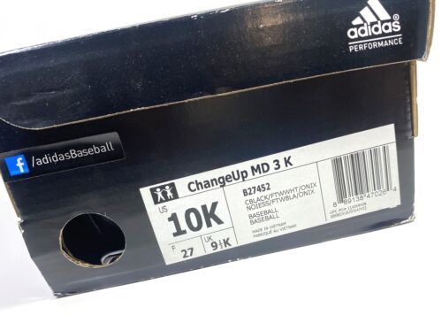 Adidas ChangeUp MD 3 Bambini Baseball Cleat - Bianco/Nero/Onix - Taglia 10K ??Tacchetto da baseball per bambini Adidas ChangeUp MD 3 (B27452). ??Tomaia in pelle sintetica e tessuto; Suola di gomma. ??Intersuola in etilene vinil acetato per cuscino; Suola in gomma sagomata per trazione su erba e sterrato. ??Tacchetta da baseball o softball di eccellente valore per il tuo bambino; si comporta bene su erba o terra. colletto imbottito per protezione e comfort con un traspirante ??Chiusura completa con lacci per una vestibilità personalizzata. ??Intersuola in Eva per il supporto con suola in gomma per una migliore trazione. Oggetto reale nella foto! Esattamente quello che riceverai! Si prega di vedere tutte le immagini. ? CLIC QUI DA VEDERE I MIEI ALTRI ARTICOLI PER ALTRE FANTASTICHE OFFERTE!!