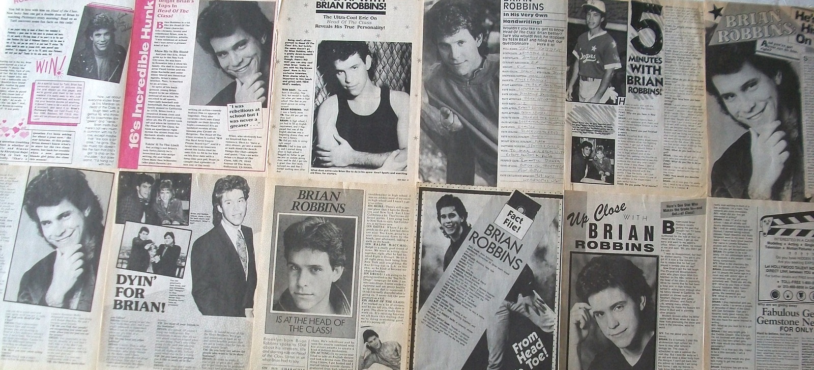 DESCRIPTION: Thirty-Eight (38) BRIAN ROBBINS Color and B W Clippings, Articles, Pin-Ups