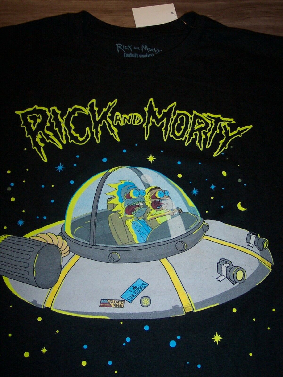 This is a RICK MORTY Spaceship Cartoon Network Adult Swim T-shirt. It is a size 2XL, and it is NEW with the tag. It is 26 inches from armpit to armpit and 32 inches in length. Combine auctions to save on shipping. AD