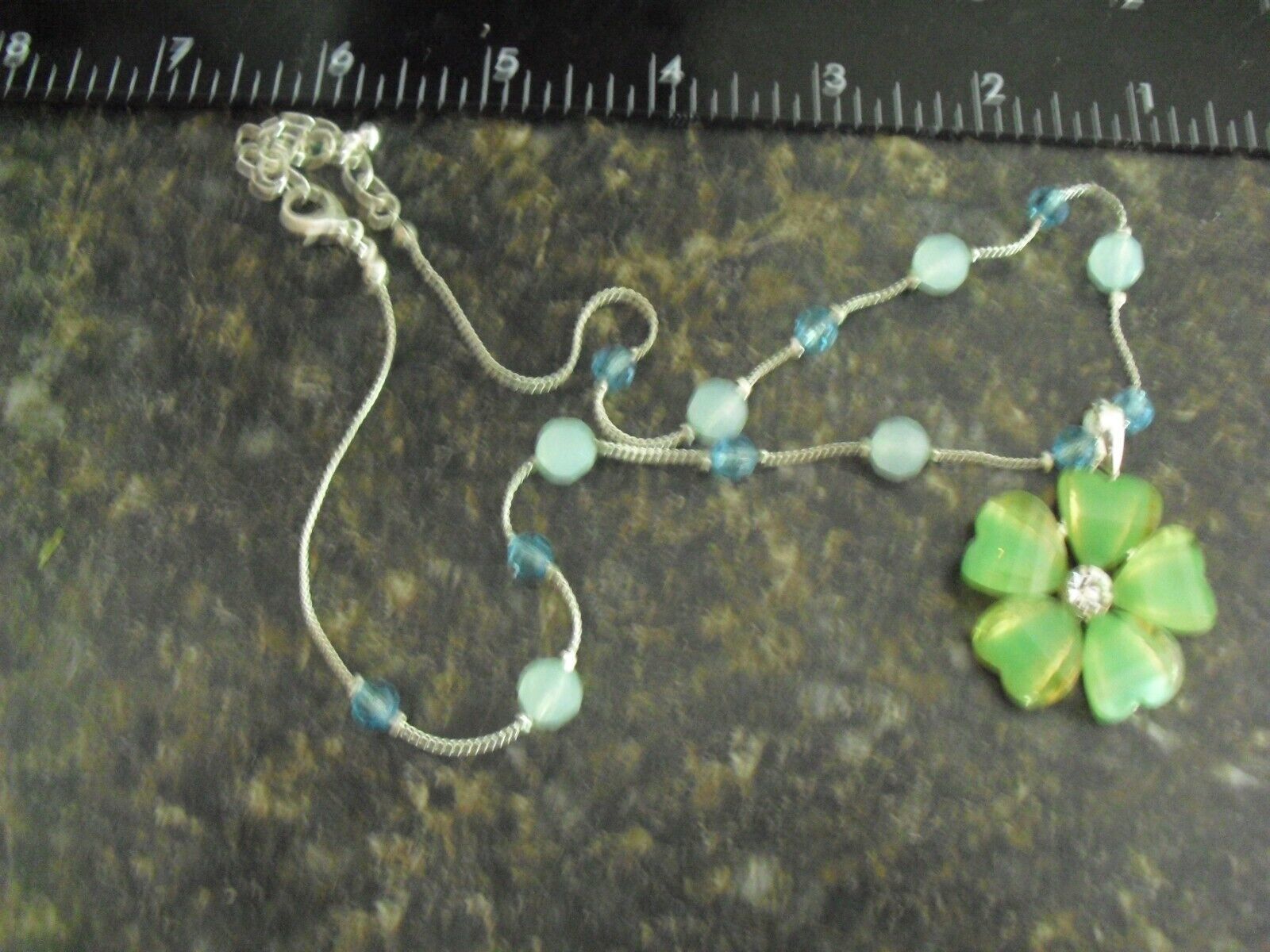 Vintage Silve Tone Metal with Beads Necklace & Shamrock Pendant 18" Long