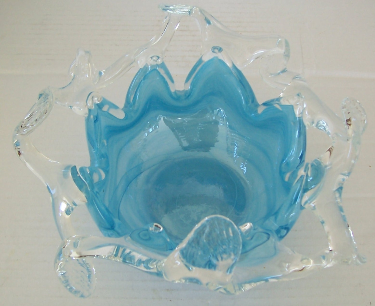 MURANO GLASSWARE Handblown Abstract Art Light Blue Glass Table Display