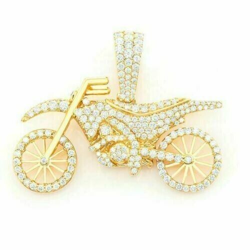 2Ct Round VVS1 White Diamond Dirt Bike Pendant 14K Yellow Gold Finish Free Chain