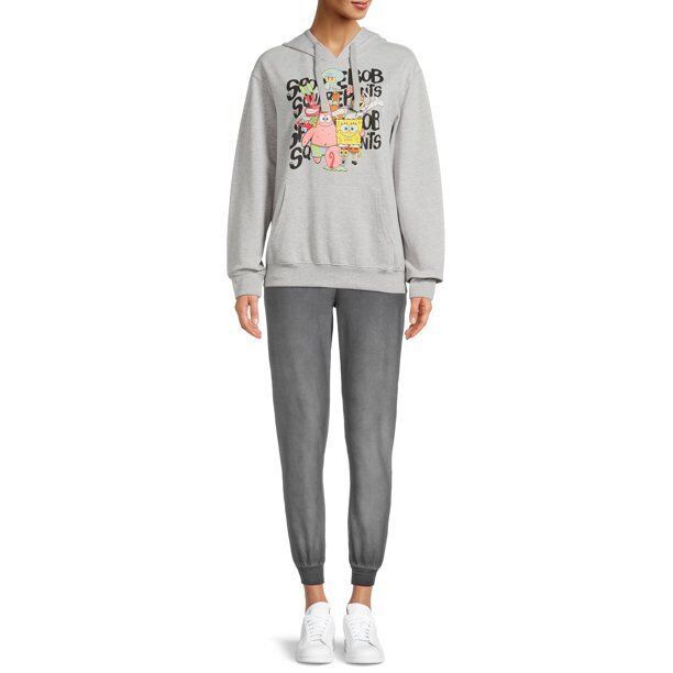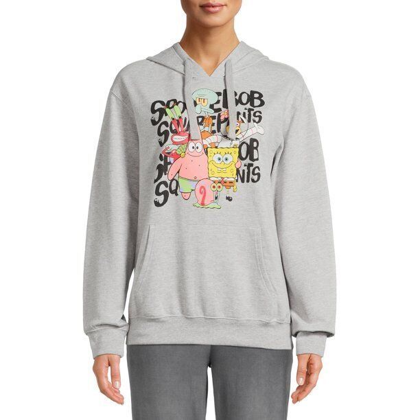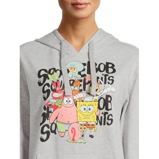Nickelodeon SpongeBob Juniors Graphic Hooded Pullover Sweatshirt Grey Sz L(11-13