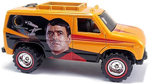 Description: Mtlflk Dark Yellow w/Black interior; Smoke windows; Multi-colored Scotty graphics on sides; Silver ‘ST’ emblem on rear w/Red ‘Star Trek’; Red tampo taillights; Real Rider tires; Black Thailand base w/ChrORRL’s. 072422-072422P-D20