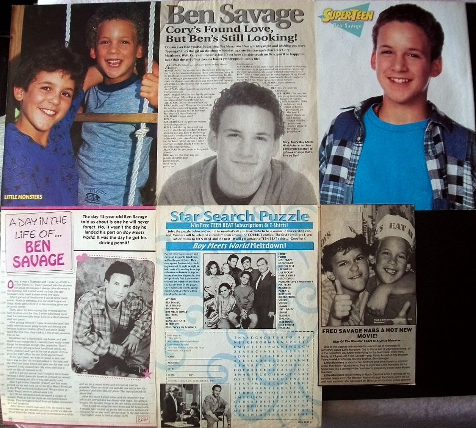 Six (6) Color Clippings / Eleven (11) B W Clippings / One (1) B W Half-Page Article / Three (3) B W Full-Page Articles / Two (2) Color Pin-Ups - 1 features Fred Savage