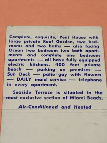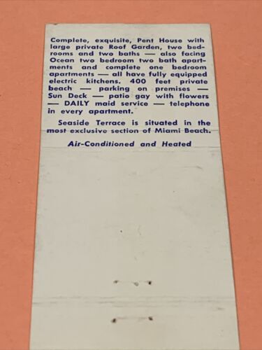 Front Strike Matchbook Cover Seaside Terrace Miami Beach,Fl gmg unstruck