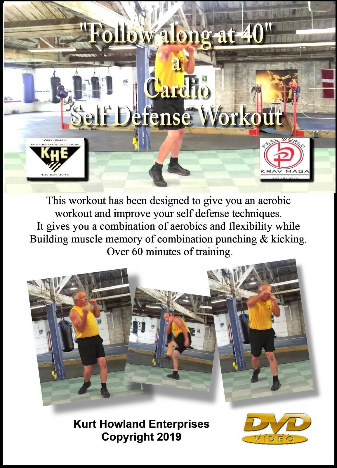 "AN AEROBIC WORKOUT" at 40 years old up This workout has been designed by instructor Kurt Howland to strengthen and improve your self defense techniques. It gives you a combination of aerobics and flexibility, while teaching punch kick combinations.