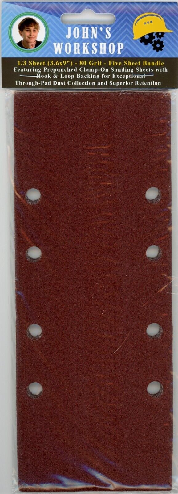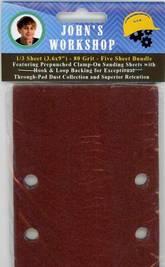 Performax JD2621 - 1/3 Sheet (3.6x9") - 80 Grit - PrePunched - 5 Sheet Sandpaper Bundle