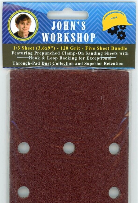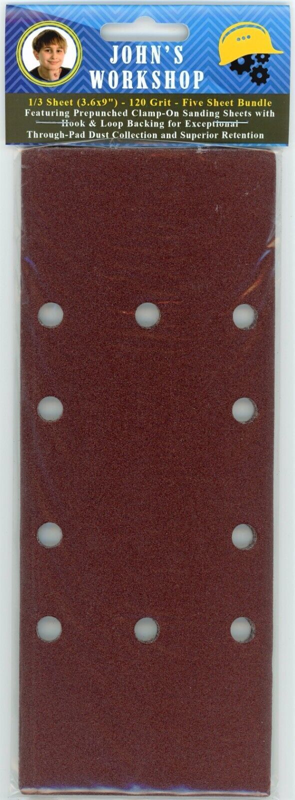 Toolman DB3218 - 1/3 Sheet (3.6x9") - 120 Grit - PrePunched - 5 Sheet Sandpaper Bundle