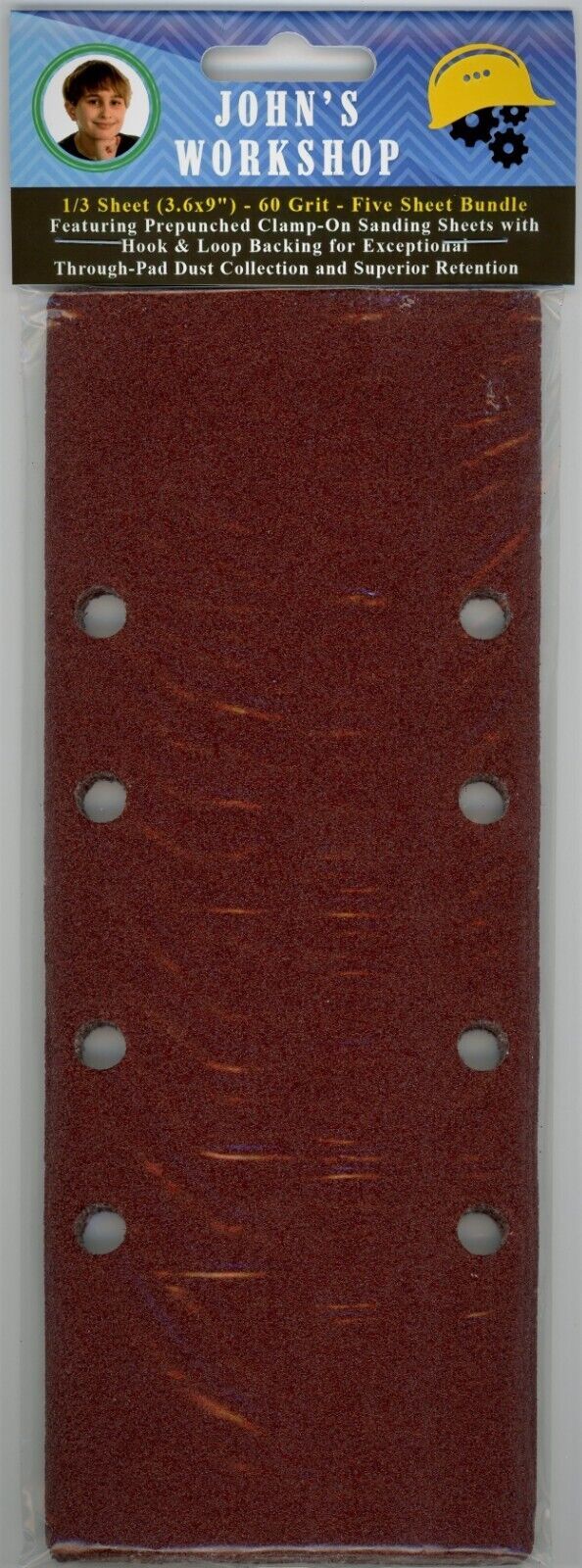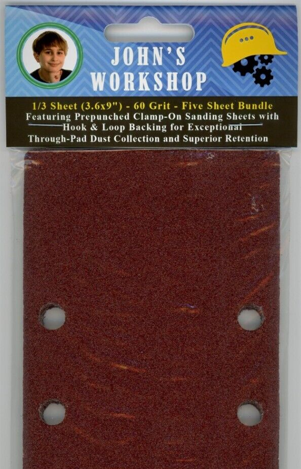 WEN 6313 - 1/3 Sheet (3.6x9") - 60 Grit - PrePunched - 5 Sheet Sandpaper Bundle