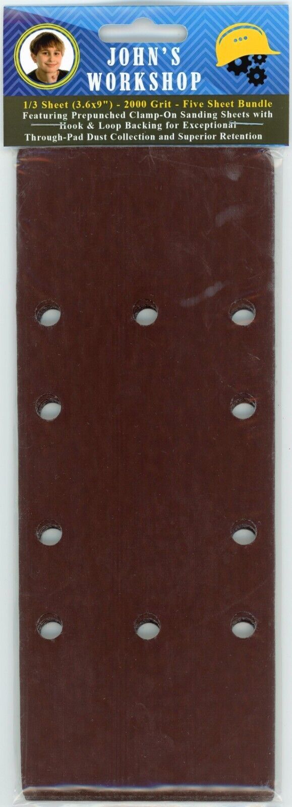 Toolman DB3218 - 1/3 Sheet (3.6x9") - 2000 Grit - PrePunched - 5 Sheet Sandpaper Bundle