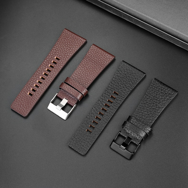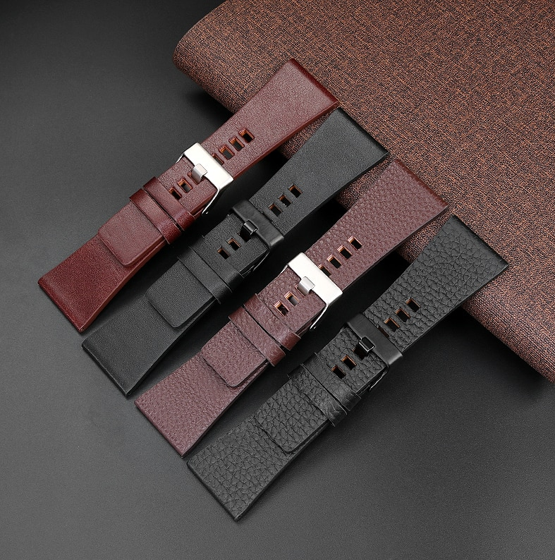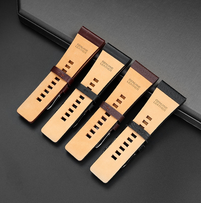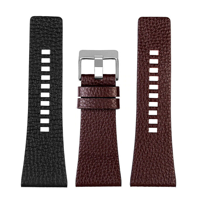 34mm Black/Brown Genuine Leather Watch Strap/Watchband + Changing Tool