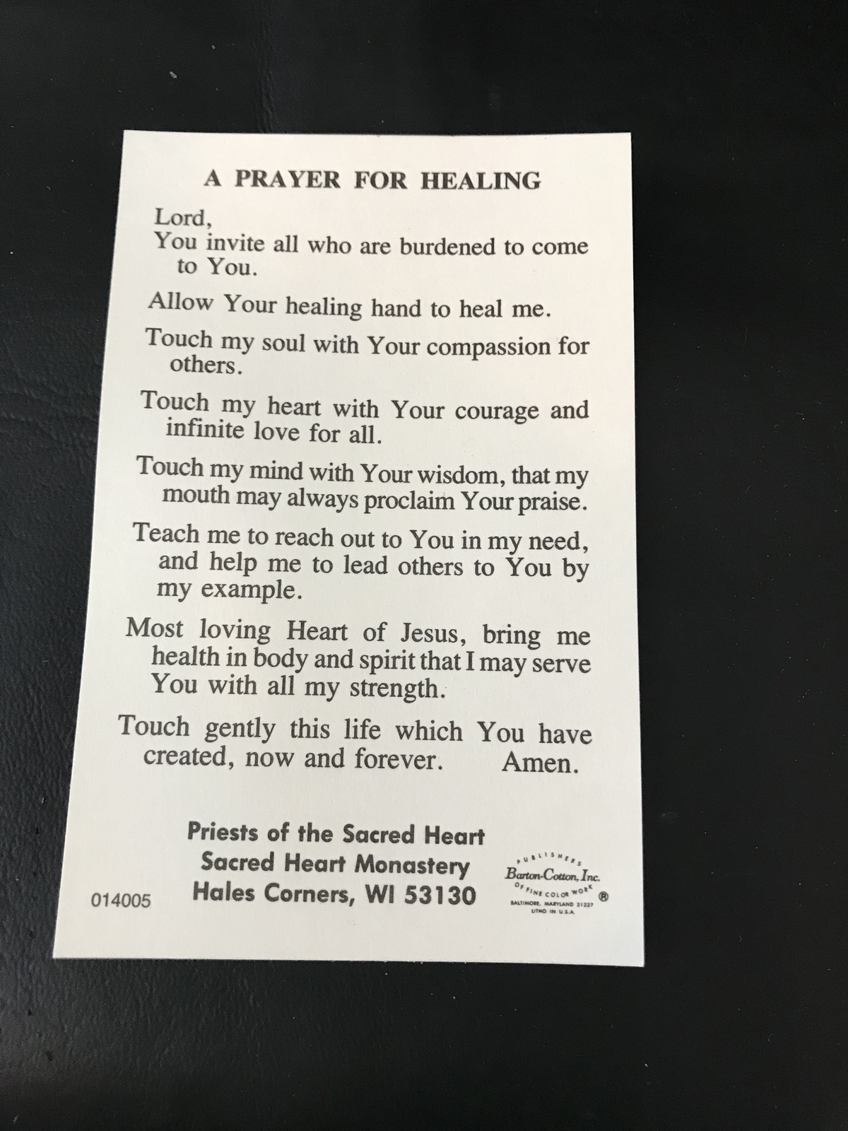 1960's Prayer For Healing Tract