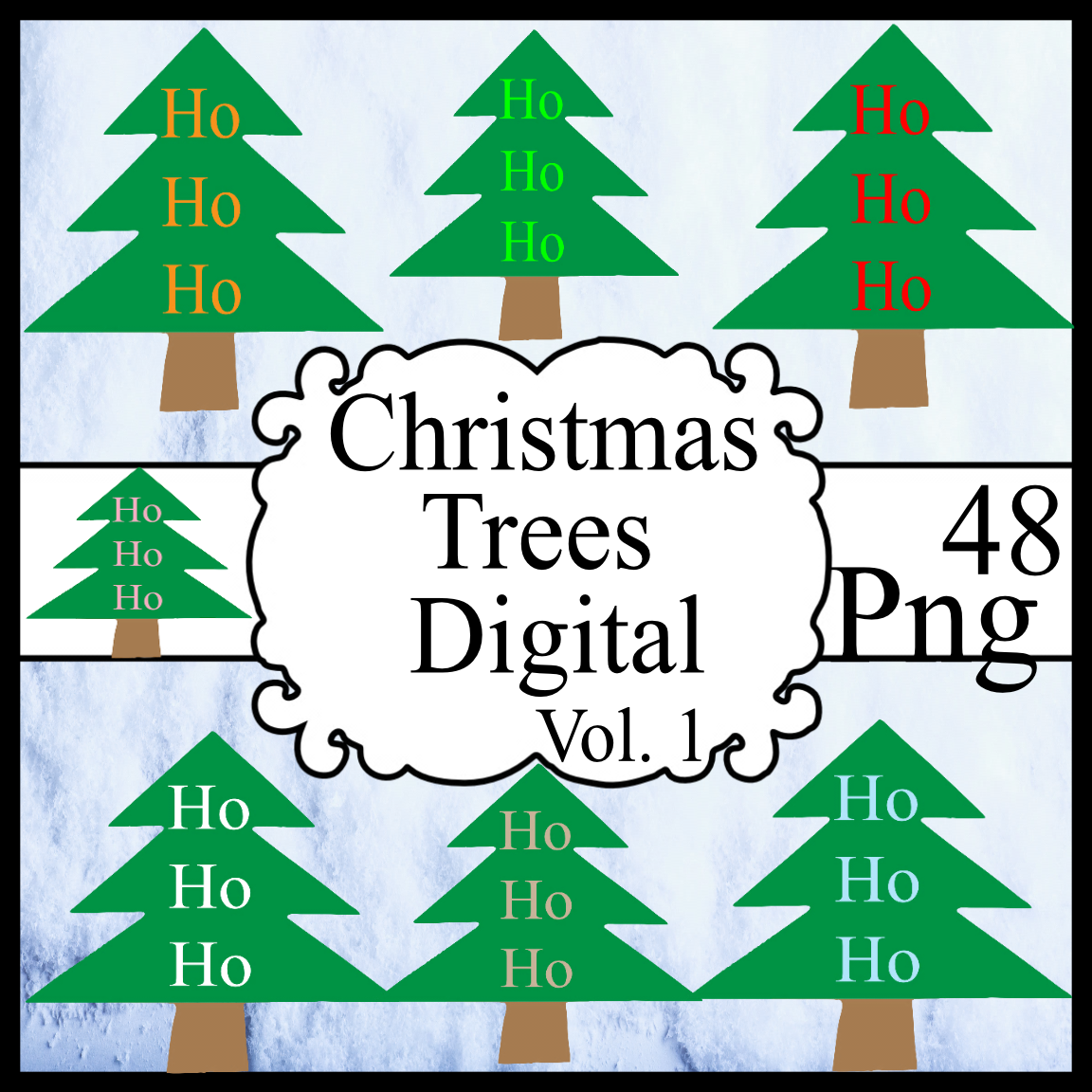 Christmas Trees Ho Ho Ho Digital Vol. 1-Art Clip-Banner-T-shirt-Background-Gift Tag-Website-Notebook-Gift Cards.
