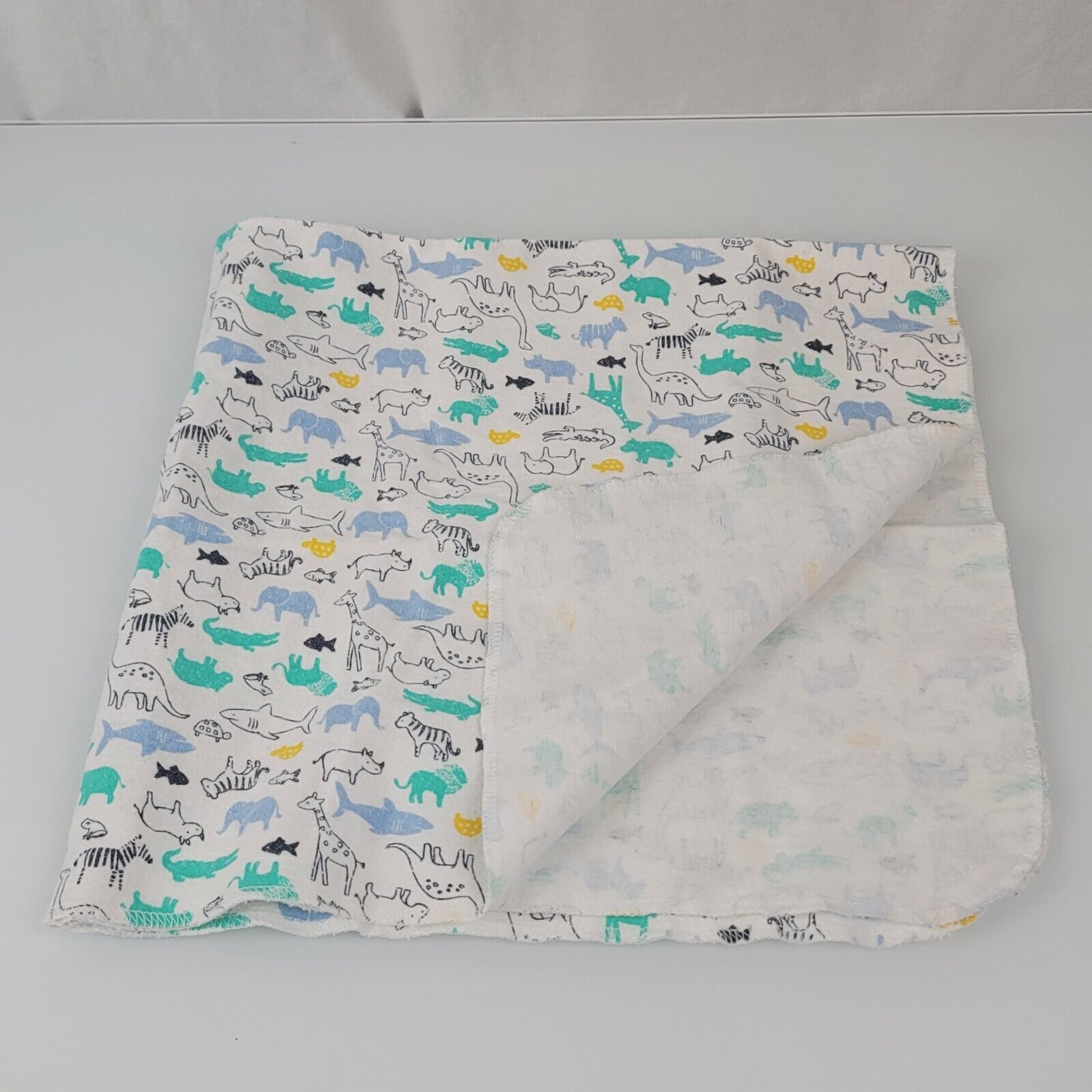 Child of Mine Flannel Baby Blanket Jungle Zoo Animal Blue Yellow Green Sea Ocean