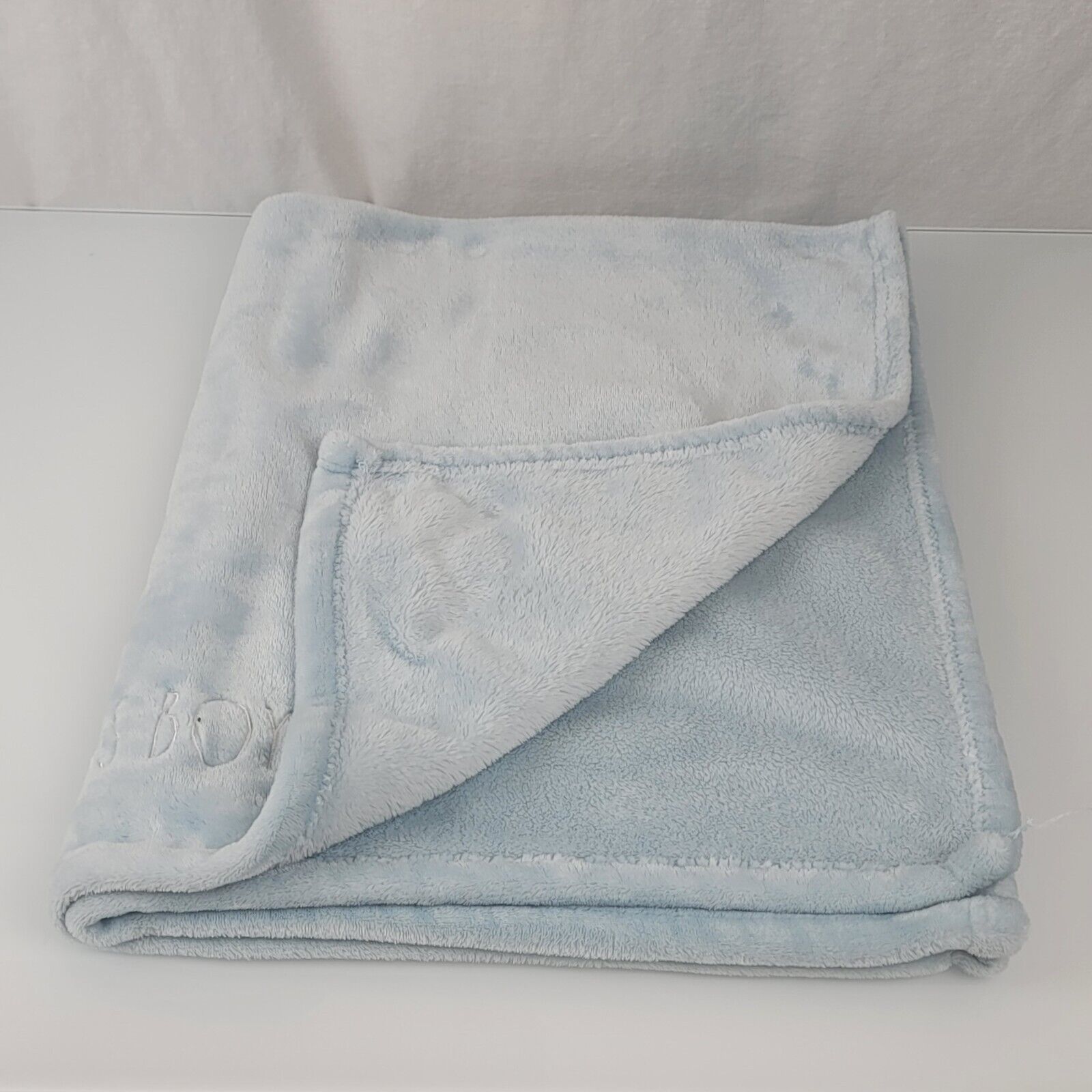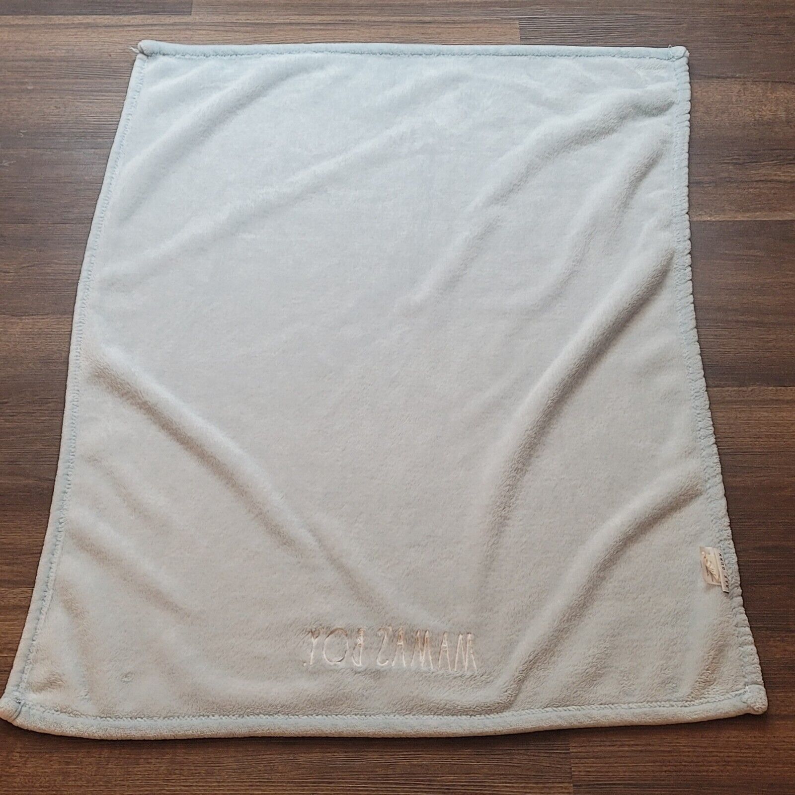 Rae Dunn MAMAS BOY Blue with White embroidery Baby Blanket ULTRA Soft 30x40