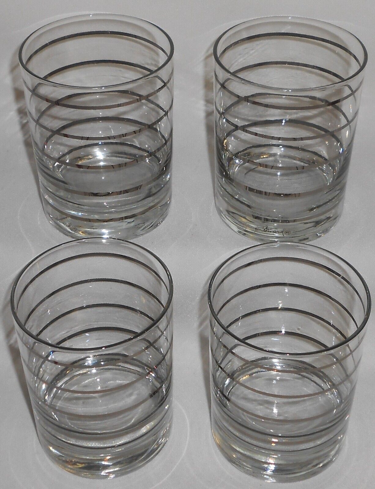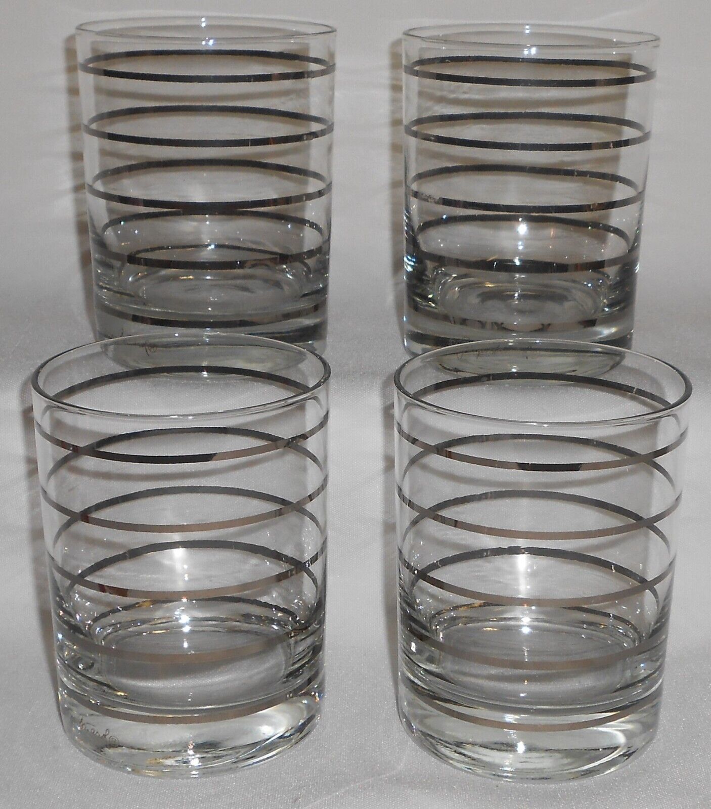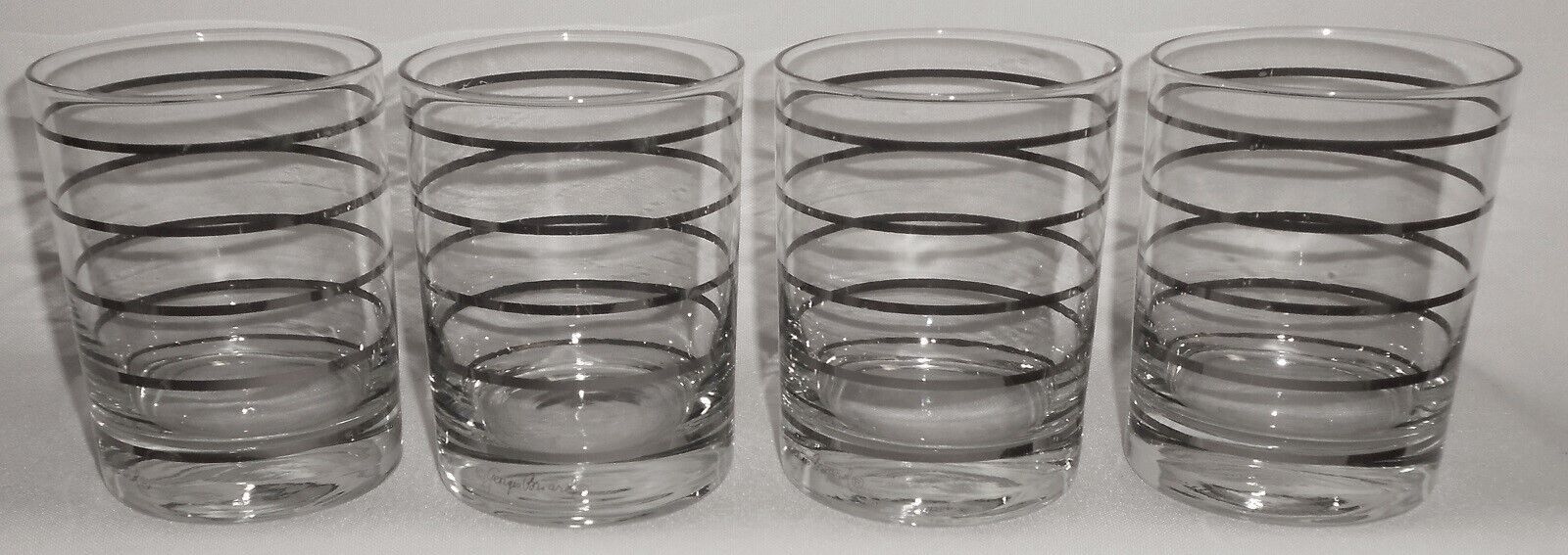 Set (4) Georges Briard MID CENTURY 12 oz Old Fashioned Platinum Bands Tumblers