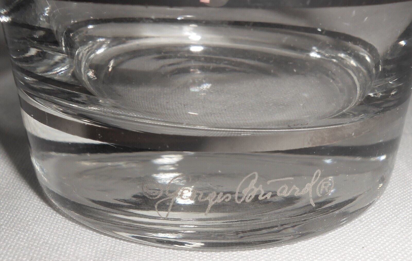 This is a Set of (4) Mid Century 12 oz Old Fashioned Bar Tumblers that has a platinum banded design from Georges Briard and Made in the USA. They measure approx 4 1/2" tall and 3 1/4" wide at mouth and they all have the Georges Briard signature at bottom near base and they are all in good pre-owned condition with no chips or damage.