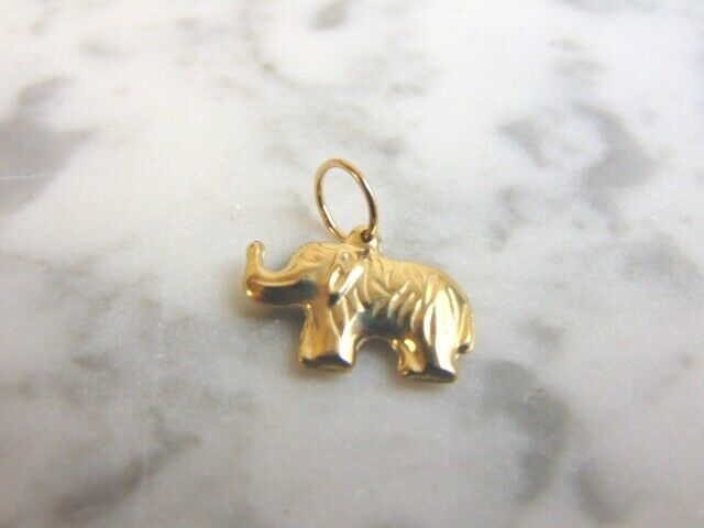 A WOMEN'S 10K YELLOW GOLD ELEPHANT CHARM PENDANT. PENDANT IS 3/4" LONG BY 3/4" WIDE. TOTAL WEIGHT OF THE PENDANT IS 0.7g. PENDANT IS NOT MARKED BUT IT HAS BEEN TESTED AND IS GUARANTEED TO BE 10K GOLD. WOULD MAKE A LOVELY GIFT FOR THAT SOMEONE SPECIAL. ANY OTHER QUESTIONS PLEASE ASK. BE SURE TO CHECK OUT SOME OF MY OTHER GREAT ITEMS UP FOR SALE. THANK YOU