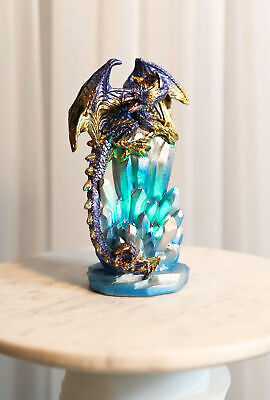 Ebros Purple And Gold Cosmic Dragon On Blue Crystal Stalactite Rock LED Light Statue