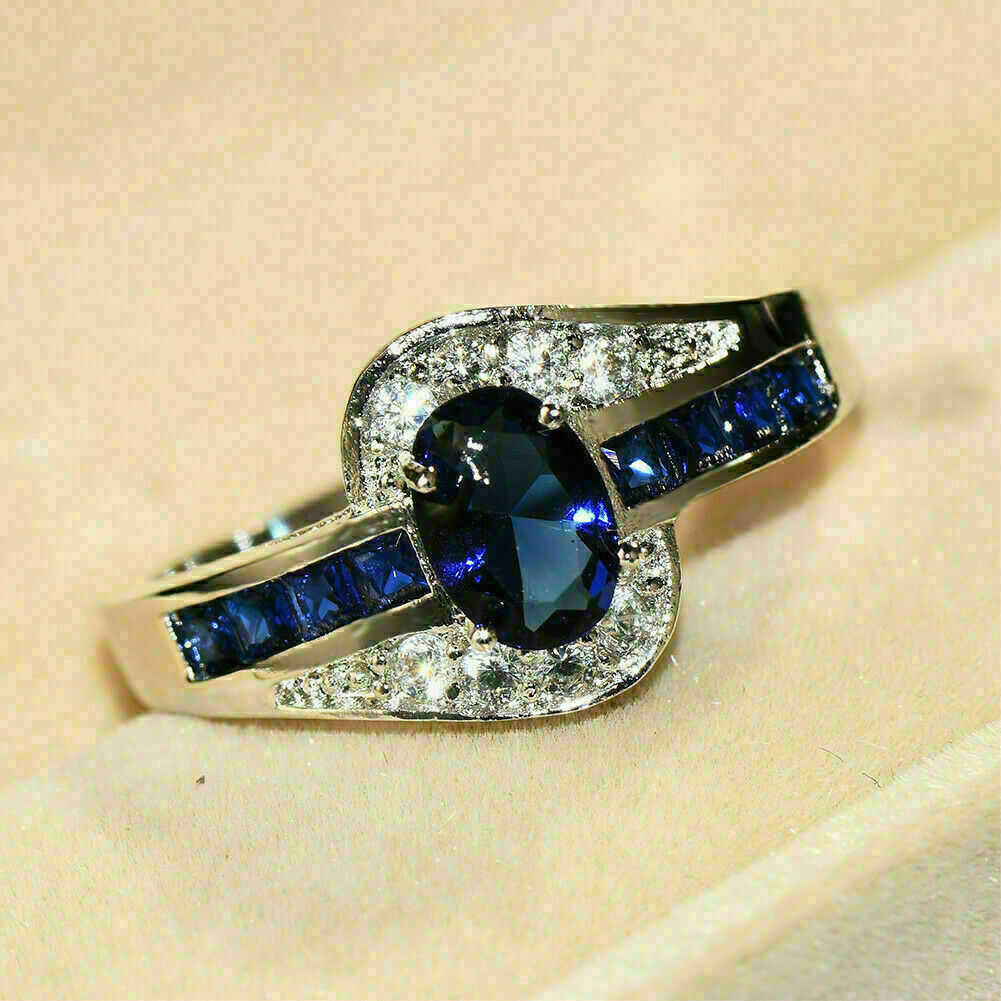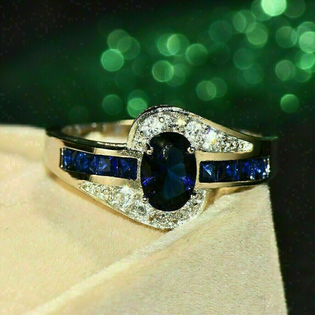 Anello di fidanzamento con diamante zaffiro blu taglio ovale da 2 ct e...