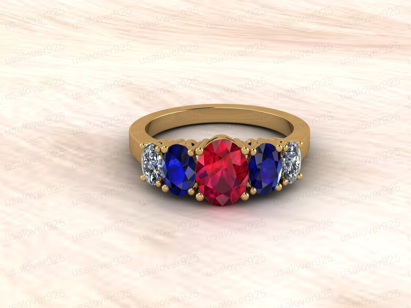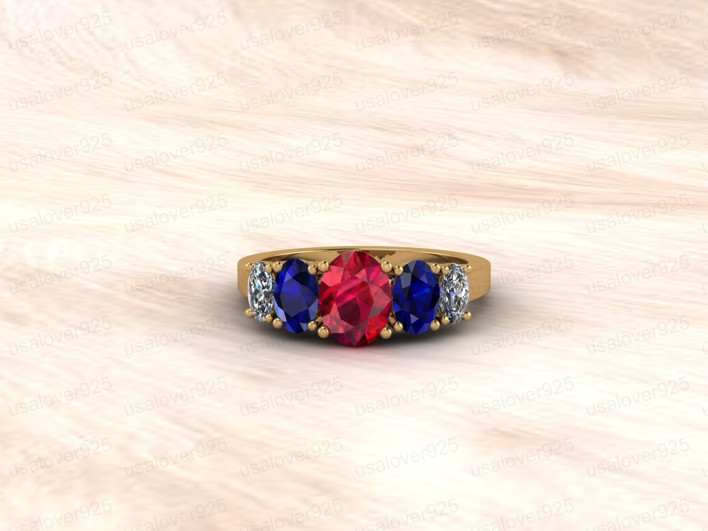 Ruby Sapphire And Lab Created CZ Diamond Gemstone Sterling Silver Women Ring