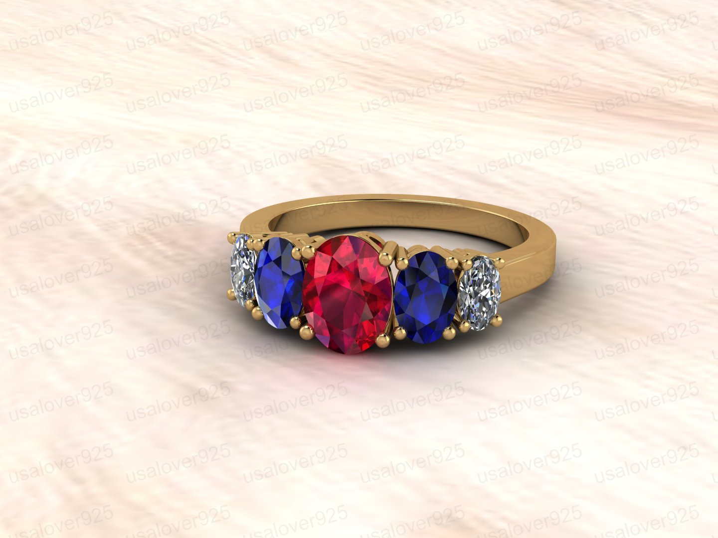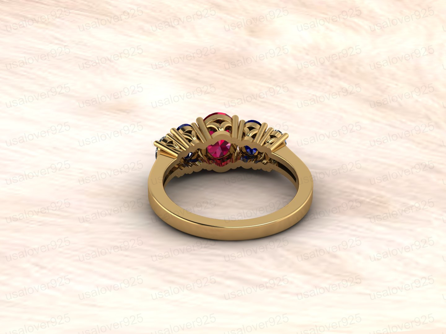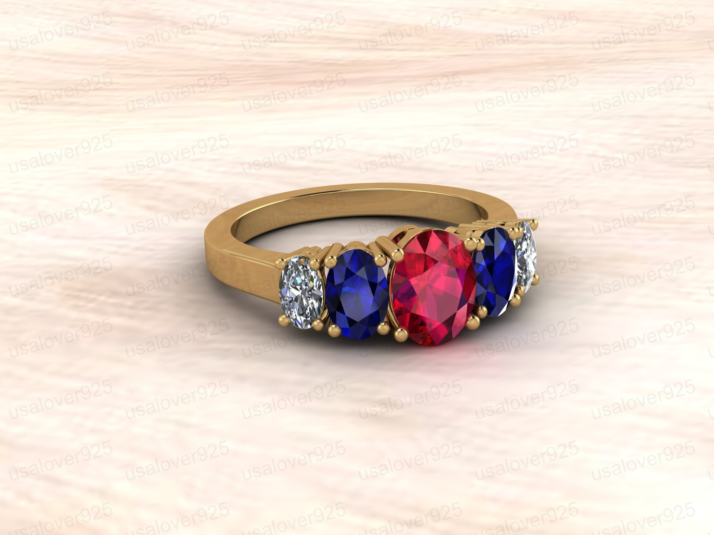 Ruby Sapphire And Lab Created CZ Diamond Gemstone Sterling Silver Women Ring  added to cart.