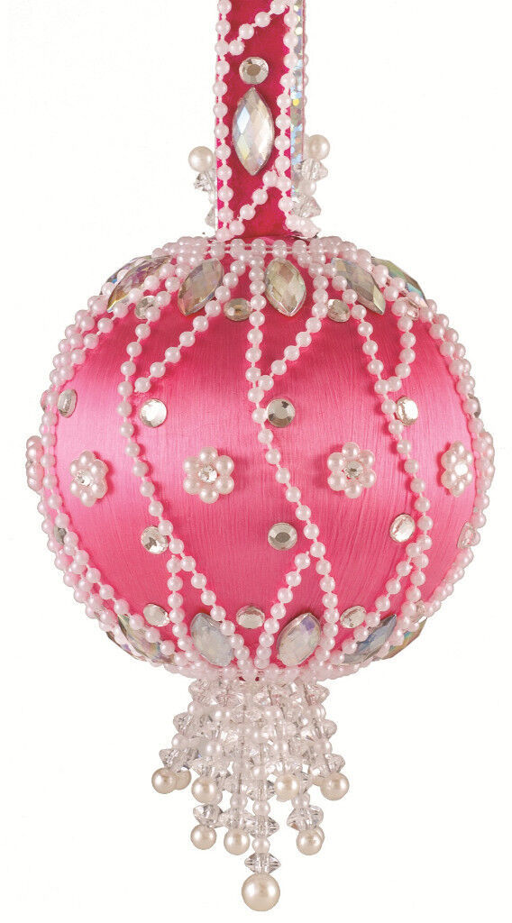 The Cracker Box Christmas Ornament Kit Moonlit Pearls (Hot Pink Ball w/crystal)