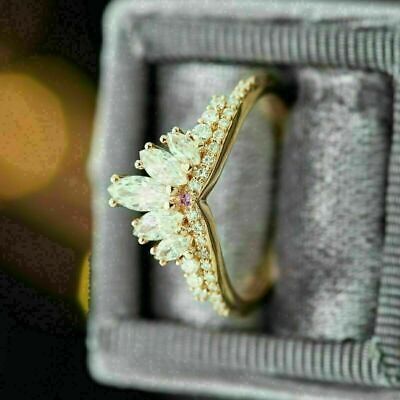 Fede nuziale con corona di diamanti taglio marquise da 2 ct 14 carati con...