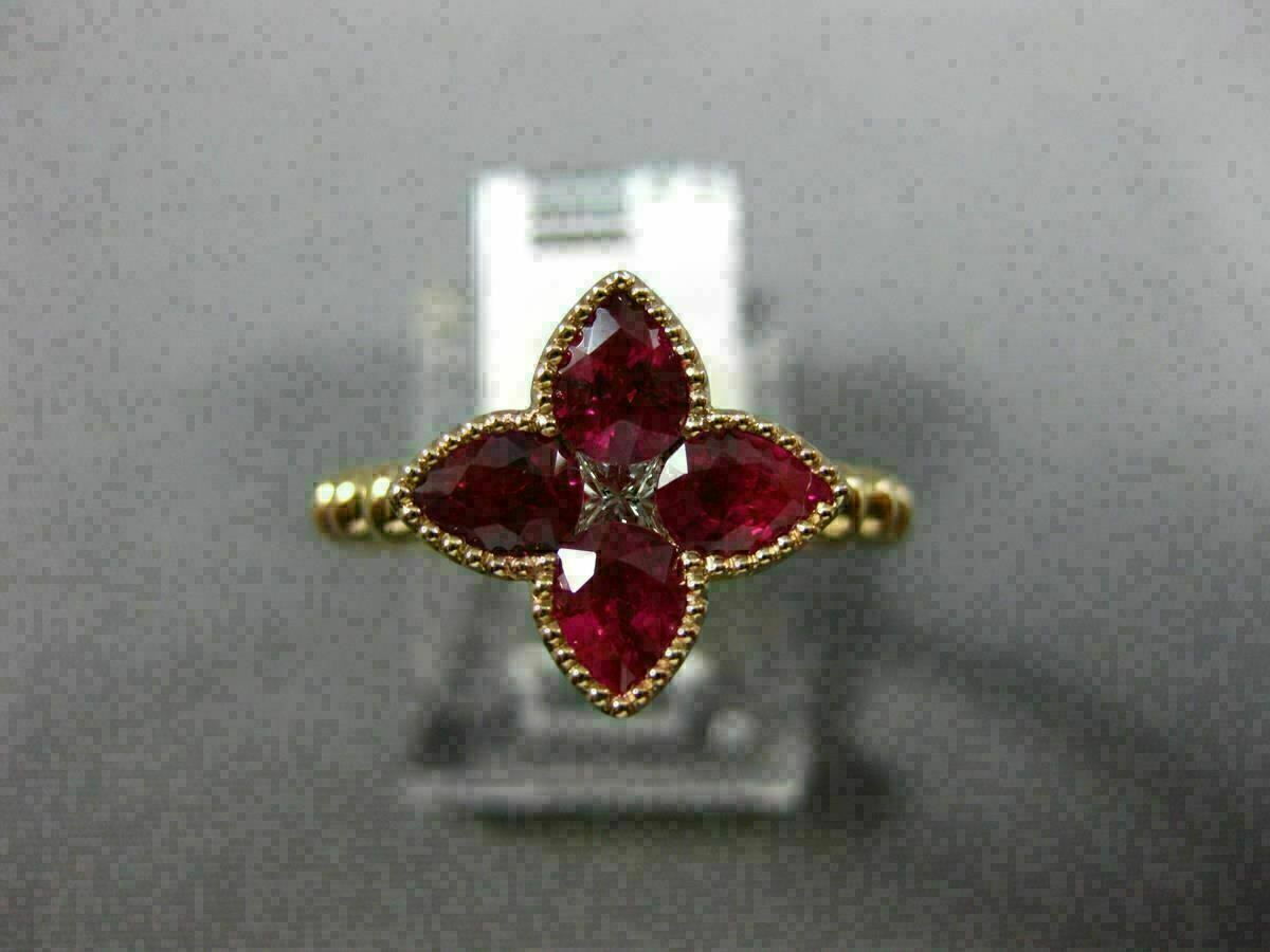 Anillo de compromiso con flor única para mujer con rubí de talla pera de 3...